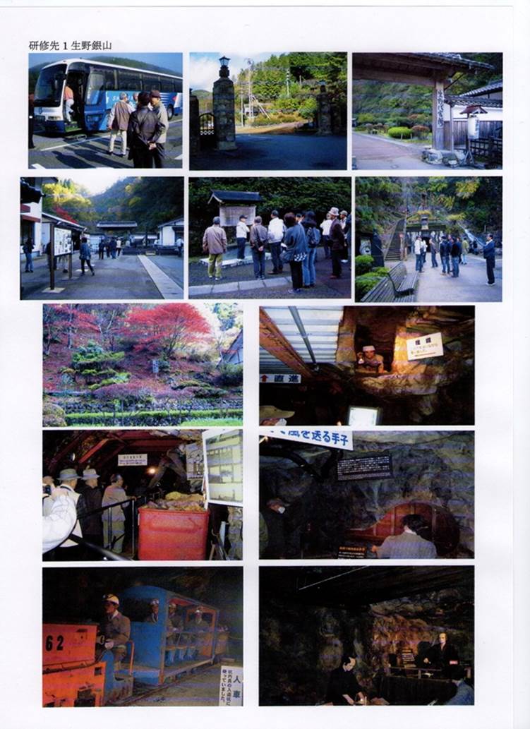 以上の要点にて、当日JR神戸駅に集合。 08:30バスにて一路出発。 途中トイレ休憩後、10.00生野銀山到着。 銀山ガイドさんの先導で、当所の歴史等説明後、坑内に入る。 ひんやりとした坑内。 昔の人は偉かったではありませんか。当時の抗夫の方々の狸掘り等々ご苦労が身近にせまり、粉塵公害による短命の方もおられた由。 坑内労働の大変さが ひしひしと感ぜられました。 約1時間30分の見学研修もガイドさんの説明で良く納得致しました。抗外に出て大気の有りがたさも感じた研修でした。会館での昼食後、再びバスに乗車。13:00関西電力大河内発電所に到着。 EL VILLAGEにてビデオによる概略説明があり、バスにて地下発電所に向かう。 現在はメンテナンス中とか、発電は休止中であったが、地下1~3階までの発電機具の説明で予想に反しての大きさに先ずは驚く。 終わって長谷(下部)ダムに向かう。 揚水後のダム地肌が見えて、あまり良い景観ではなかったが、スケールの大きさは想像以上であった。 16:00懇切丁寧な説明を謝し 一路帰路につく。とっぷり暮れた17:40神戸駅前に到着。解散する。皆さんご苦労様でした。