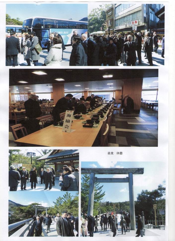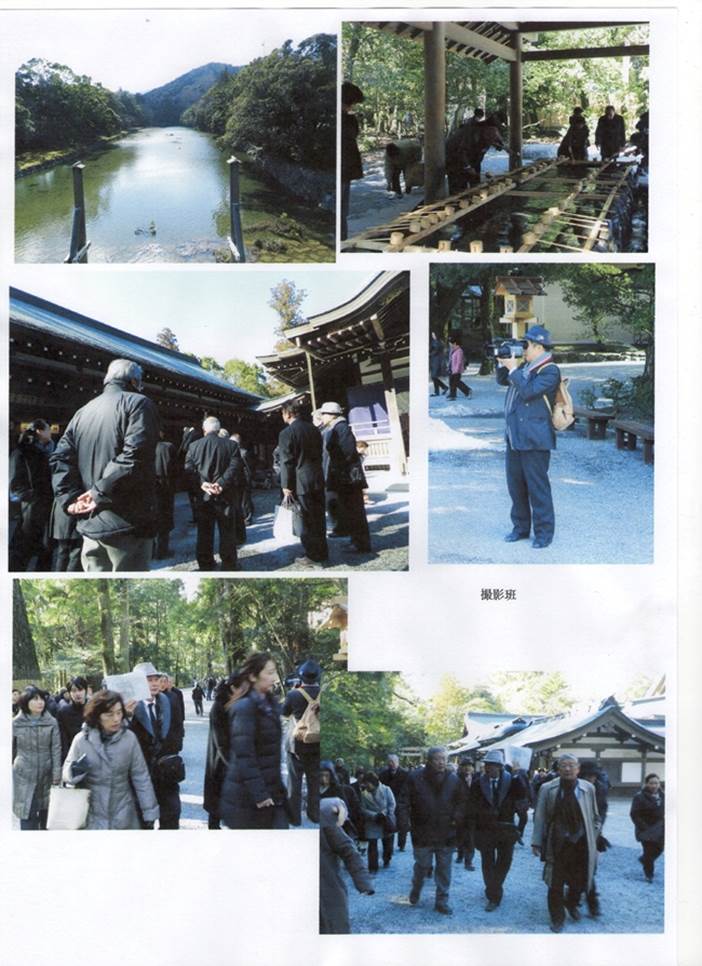 当日高速が込み合い、新大阪を08:00出発。新御堂から名神経由、甲南S.Aで休息。 多丸P.Aにて休息。 この間の約1時間を車中にて、皇学館大学久野先生の講和を拝聴。 外宮着11:30参拝。 外宮発12:15 岩戸屋にて昼食。12:40〜13:40 内宮着13:30着 参拝。 お神楽拝見14:00〜14;40