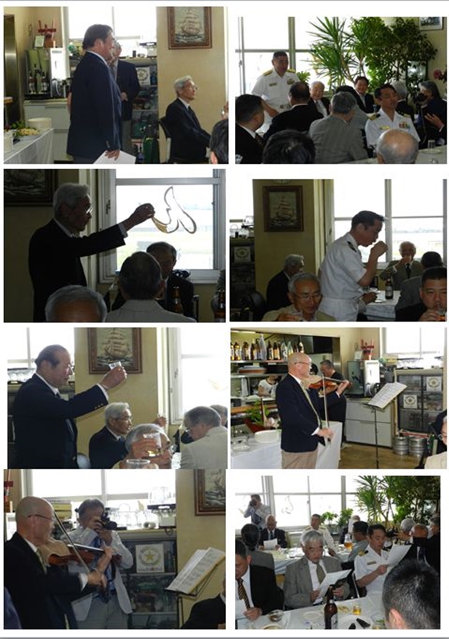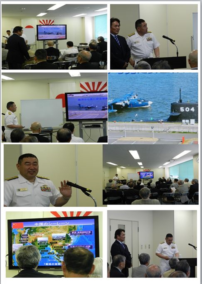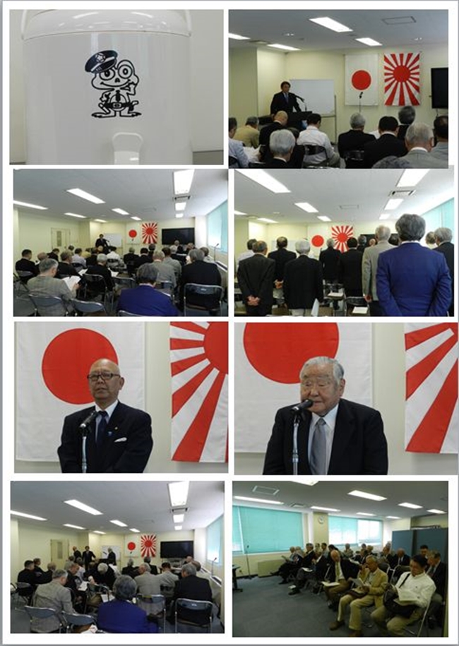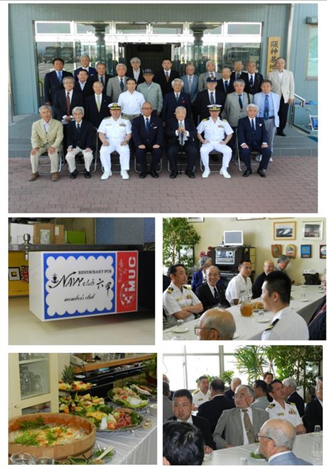 阪神基地隊の場所をお借りして海励会総会を実施し、研修として司令の高島辰彦海将補に防衛講話をお話しいただいた。終了後、基地内の六甲クラブで、昼食兼懇親会を実施。