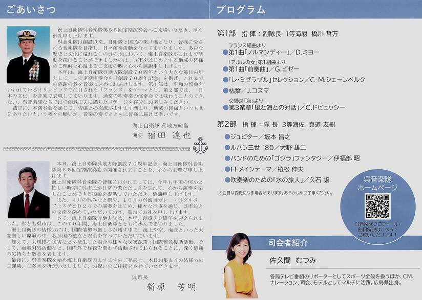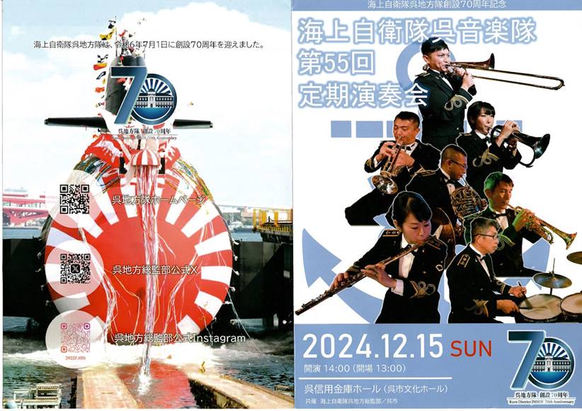 令和6年12月15日、海上自衛隊呉音楽隊 第55回定期演奏会が開催され、海励会から5名が参加して