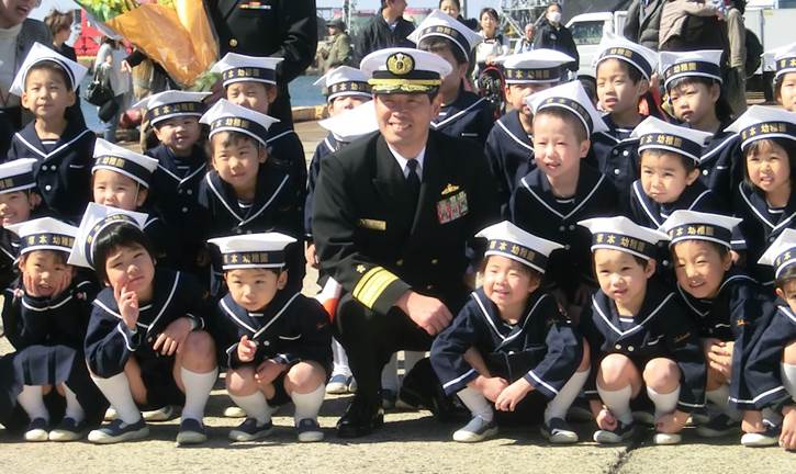 幼稚園児に呼びかける練習艦隊司令官