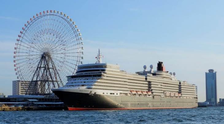 対岸の天保山岸壁には豪華客船「クイーン・エリザベス」が入港