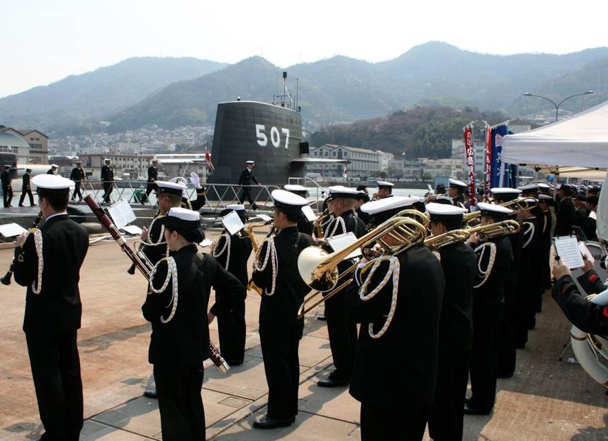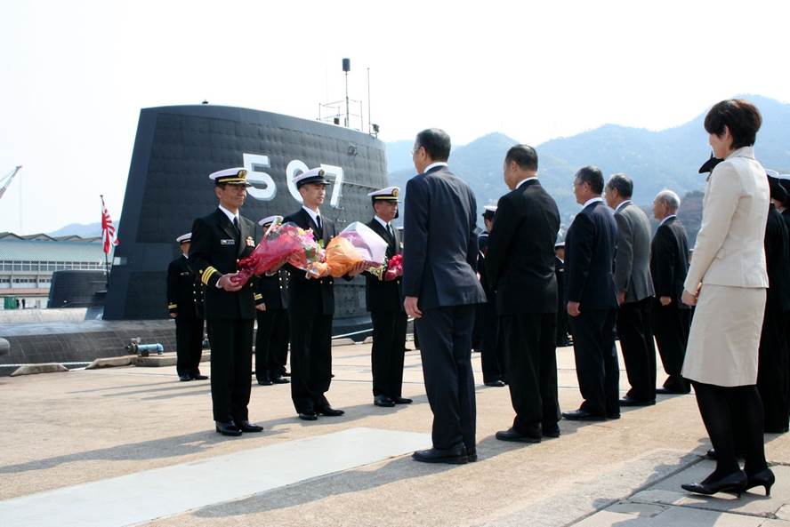 潜水艦「じんりゅう」呉初入港 歓迎式
