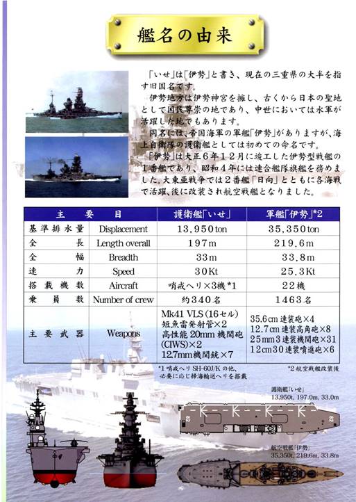 護衛艦「いせ」は、帝国海軍の戦艦「伊勢」とほぼ同じ大きさ。