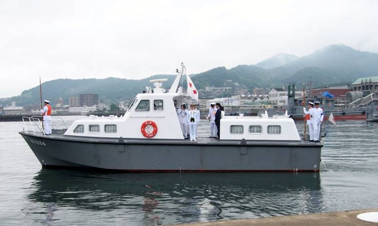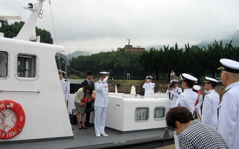 令夫人、御子息と共に将官艇で出発される池田総監
