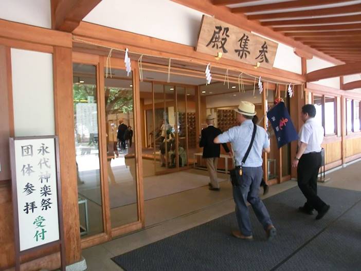 靖国神社 権宮司様より説明いただく。 なお、ご本殿での昇殿参拝は撮影不可。