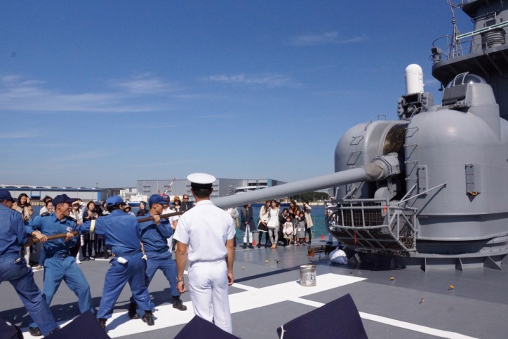 特別公開で、127mm砲の珍しい砲身掃除等を見学