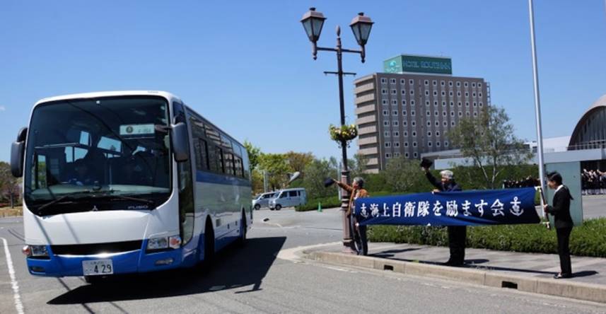 呉音楽隊員をお見送りする海励会員 (撮影:海励会) |