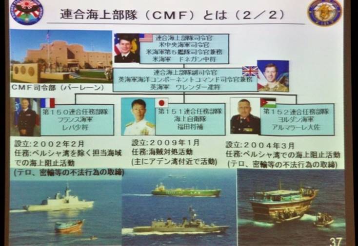 CTF151司令官として、アメリカ、イギリス、フランス、オーストラリア、トルコ等からなる多国籍部隊を率いてソマリア沖、アデン湾における海賊対処任務を完遂し、帰国されたばかりの福田海将補(大阪出身)に、そのホットな話題を語っていただきました。 海励会からも13名が参加。