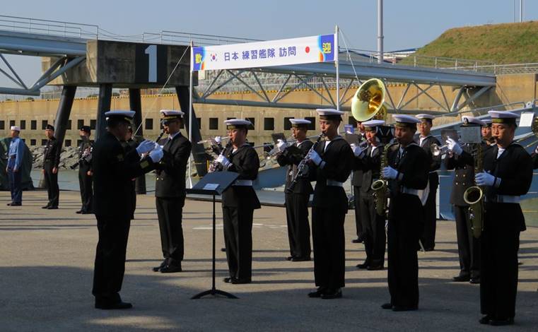 入港歓迎行事で演奏する韓国海軍第2艦隊軍楽隊