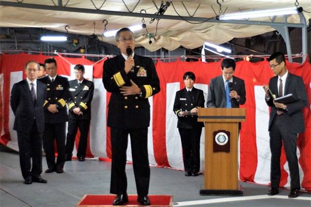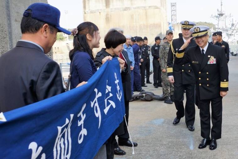 接岸後、真っ先に我々のところへ挨拶に駆け寄られた眞鍋 司令官 (後ろは渡邉駐韓武官)