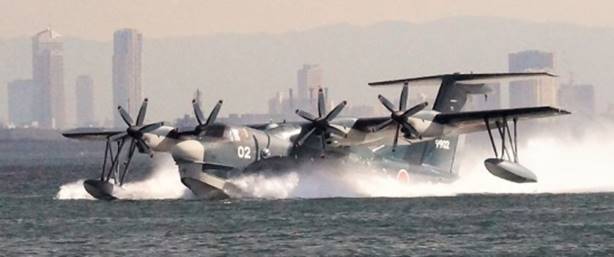 阪神基地隊近くで試験飛行するUS-2飛行艇