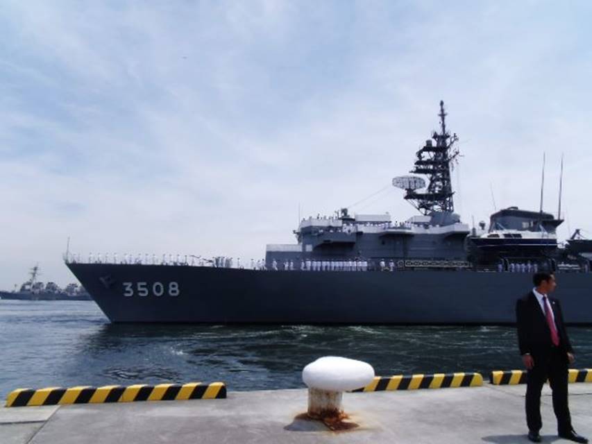 日、横須賀基地での遠洋練習航海部隊出発行事に参加。