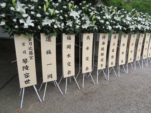 平成30年5月26日、香川県の金刀比羅宮で第67回掃海殉職者追悼式が実施された。