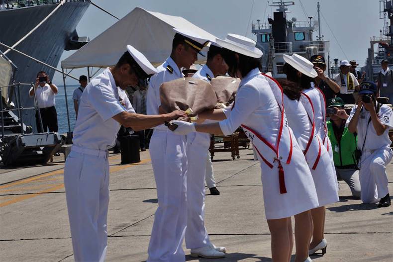 平成30年7月14日(土) 12:00第7護衛隊所属の護衛艦「ゆうだち」(大湊)が 姫路港に初入港し、自衛隊兵庫地方協力本部による自衛隊入隊希望学生の体験航海 が行われた。 姫路港入港歓迎行事を主催した「はりま海上自衛隊友の会」による歓迎式が、1日遅れの 7月15日(日)に同4号岸壁において行われ、引き続き艦内特別公開が実施された。 7月16日(月)には一般公開が行われ、翌17日に姫路港を後にした。 |
