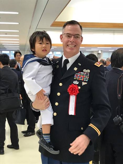 米陸軍江田島弾薬庫処長グレッグ・R・セイヤー中佐にキスをされてはにかむ聖菜ちゃん