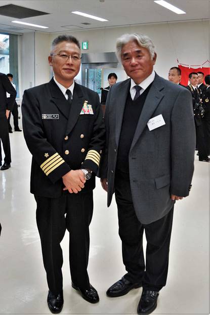 平成30年10月28日(日)快晴の下、第1術科学校グラウンドで開催された「江田島地区自衛隊記念祝賀行事」 (1部:観閲式・2部:懇親会・3部:花火大会)に、中畑1術校長より正式招待を受け、橋本会長・岸本局長・山中理事・ 宮地理事・横江会員・井上会員・井上聖菜(はくりゅう名誉乗員)が参席した。 |