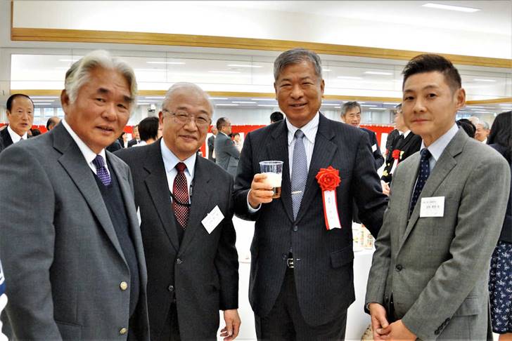 左より橋本会長・宮地理事・道家元自衛艦隊司令官(橋本会長の候補生時代の恩師)・宮地専務 ※江田島小用港⇔1術校間の往復送迎を宮地理事がして下さいました。 |