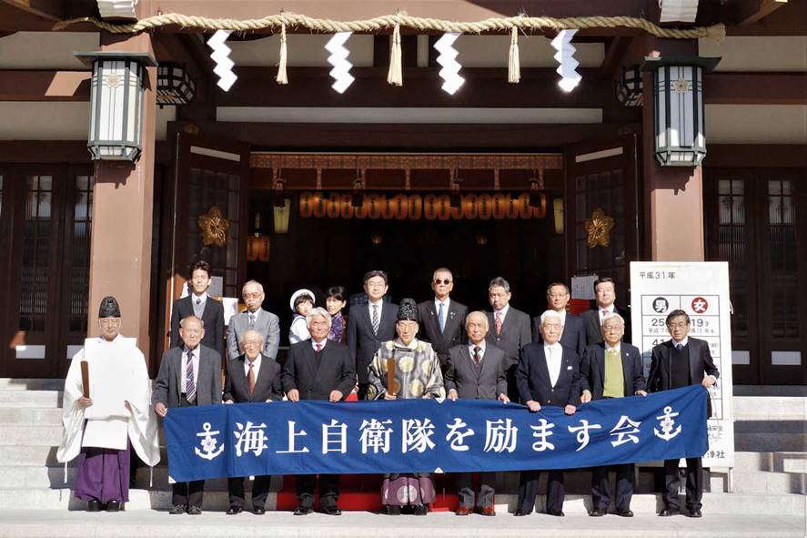 平成31年1月19日、海励会は大阪護国神社に於いて恒例の『初詣』と『新年会』を開催した。初詣では、参加者全員が昇殿参拝を行い、玉串を奉奠して、国家の安泰と陸海空自衛隊の精強、そして会員の健勝と家庭の安寧を祈願した。