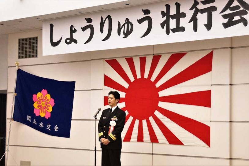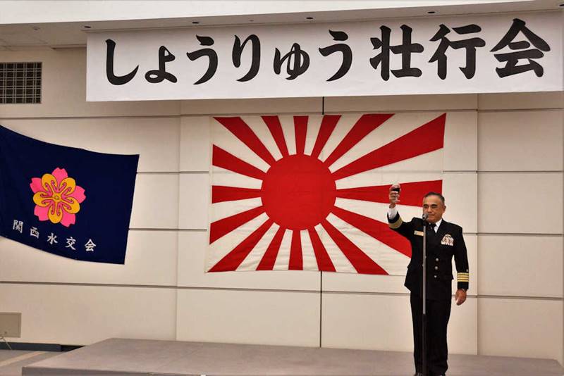 3月18日に就役する新造潜水艦「しょうりゅう (翔龍)」(そうりゅう型10番艦)の乗員壮行会が 平成31年2月22日、関西水交会の主催で神戸クリスタルタワーに於いて開催された。 壮行会には、「しょうりゅう」艦長の阿部純一2等海佐他70名の乗員と潜水艦隊司令官 島辰彦海将はじめ兵庫地本長生田目1陸佐等他約20名の制服自衛官の招待者に 川崎重工業関係者、主催の関西水交会及び海励会(20名)等支援団体関係者約270名が 参加して盛大に行われた。 |