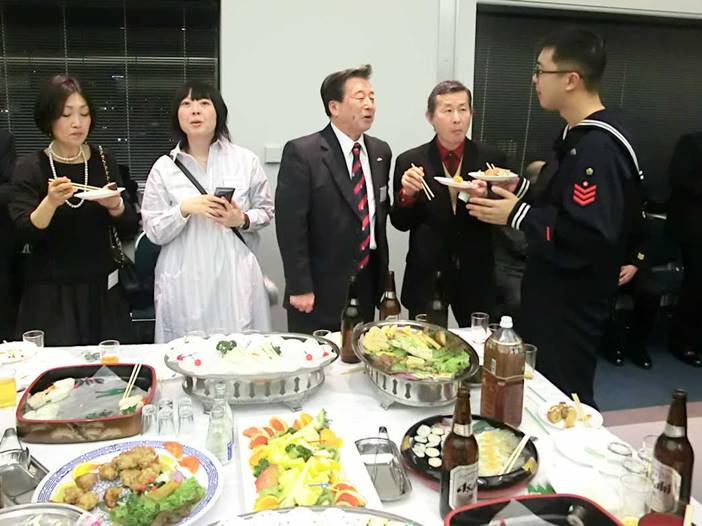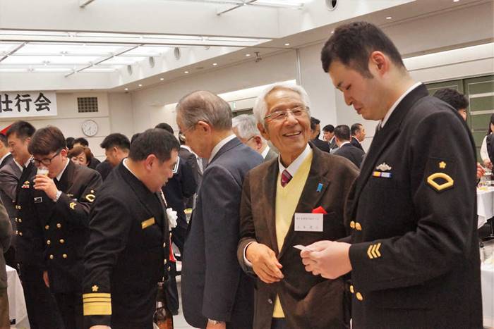 歓談する乗員と海励会員