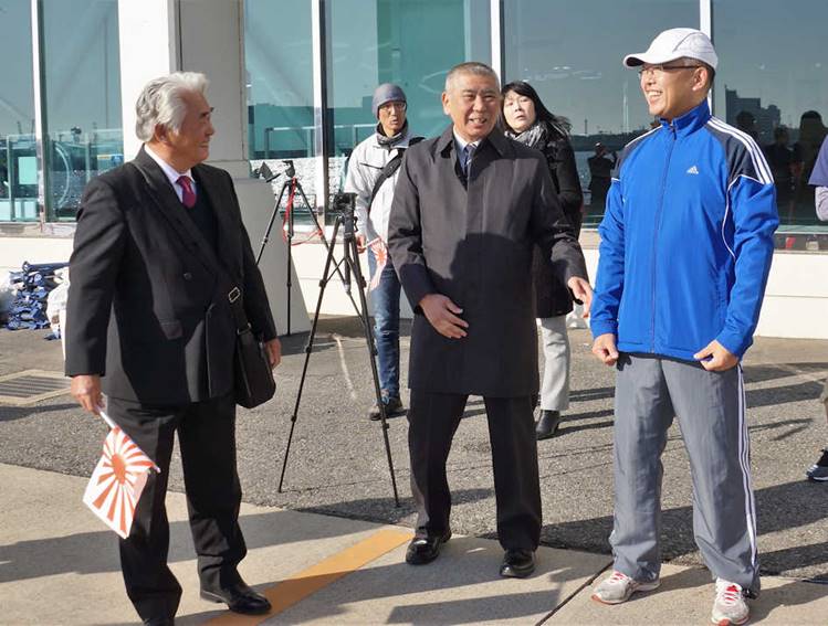 入港歓迎行事開始前、第4突堤まで走ってこられた村川海上幕僚長と関西水交会
