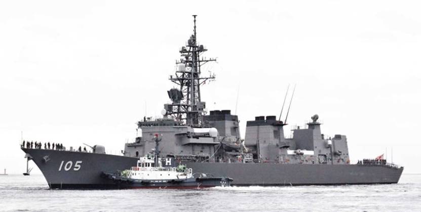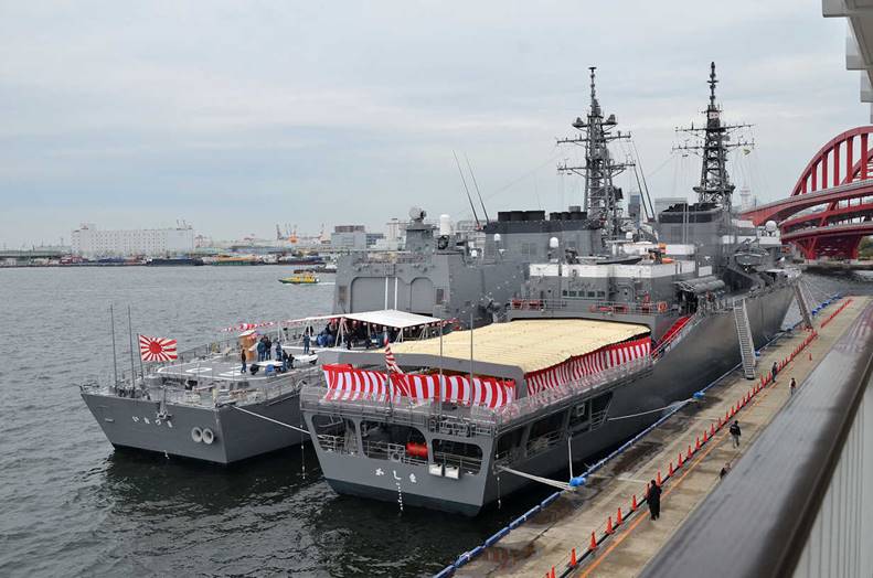 阪基に同時入港中であった外洋練習航海(飛幹)に向かう「すずつき」も続いて出港