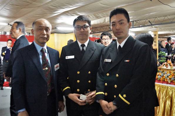 実習幹部と海励会菊地顧問 (元かしま艦長)
