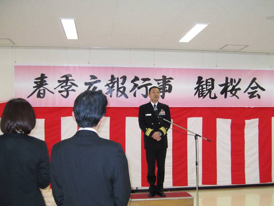 「観桜会」開催の挨拶をされる 第1術科学校長 中畑