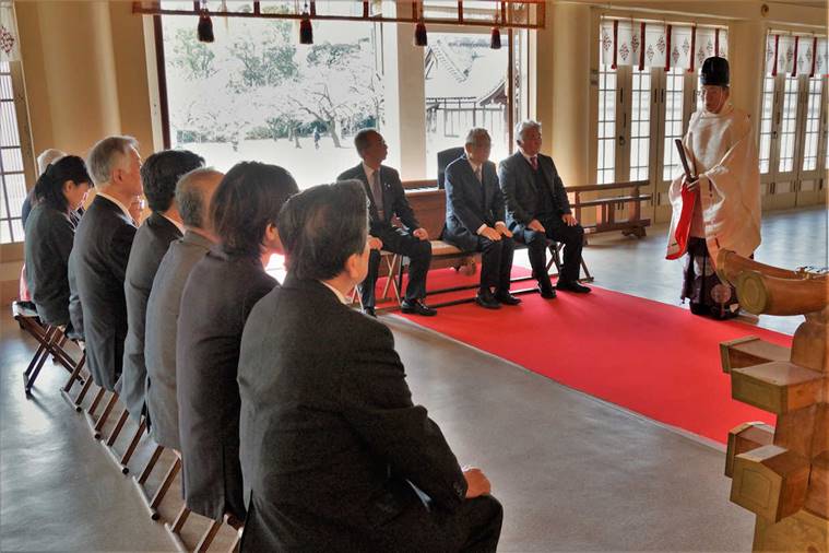 令和2年1月25日、海励会は大阪護国神社に於いて恒例の『初詣』と『新年会』を開催した。初詣では、参加者全員が昇殿参拝を行い、玉串を奉奠して、国家の安泰と陸海空自衛隊の精強、そして会員の健勝と家庭の安寧を祈願した。