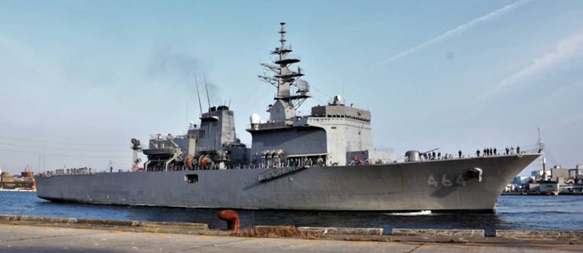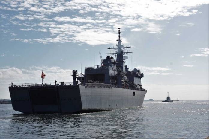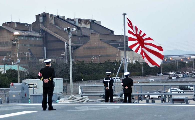 ラッパ「君が代」に合わせ、自衛艦旗降下 14日、出港