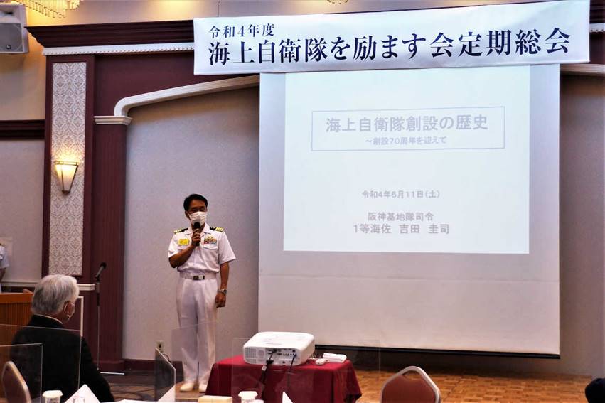 令和4年6月11日(土)、海励会の定期総会を三宮東急ホテルに於いて開催した。 本年(2022年)は、海自創設70周年という大きな節目の年でもあり、『海上自衛隊創設の歴史〜創設70周年を迎えて〜』と題して、阪神基地隊司令1等海佐