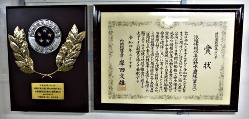 令和4年6月30日、舞鶴地方総監 海将 下淳市 様を、橋本会長、辻井副会長、