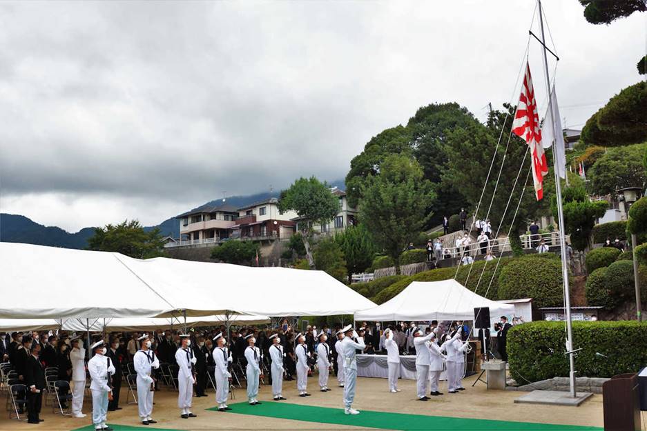 令和4年9月23日(金)、第52回呉海軍墓地合同追悼式が厳かな雰囲気の下で挙行され、 ここに祀られた13万余柱の英霊をお慰めすべく、ご遺族・旧海軍・自衛隊・関連諸団体に加え、 長迫小学校・海軍墓地顕彰保存会・広島県知事・呉市長・国会議員・近隣自治体首長等多数の 来賓並びに関係者が参列した。 海励会からは橋本会長・岸本事務局長・上谷理事・山中理事が参列した。 |