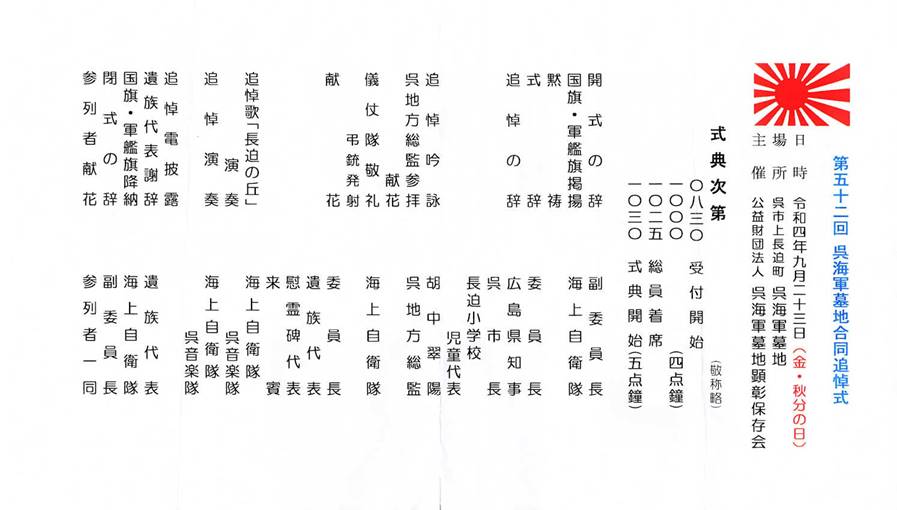 呉海軍墓地合同追悼式 参加 (2022年9月23日) |