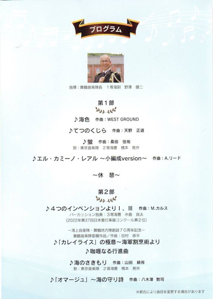 令和5年2月5日(日)、海上自衛隊舞鶴地方隊創設70周年を記念する舞鶴音楽隊 定期演奏会の