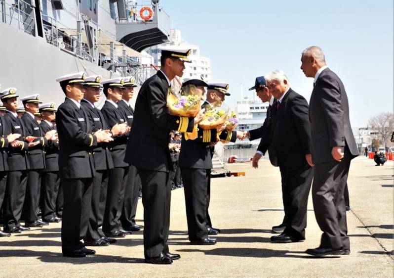 令和5年3月14日(火)午前、大阪港 中央突堤に練習艦隊入港 練習艦「かしま」、練習艦「はたかぜ」 2隻で編成 同日夕、ハイアットリージェンシー大阪にて「練習艦隊歓迎の夕べ」開催 (関西水交会 主催) 15日夕、大阪港での「かしま」艦上レセプション 17日(金)朝 、練習艦隊 大阪出港 |