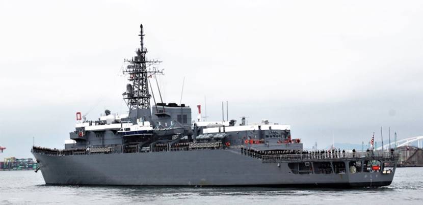 大阪出身の「かしま」艦長 大谷三穂1等海佐を囲み記念撮影