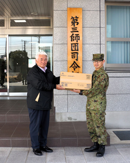 第3師団司令部 山元 英司 総務課長に支援品を伝達