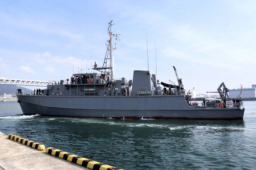 令和6年3月12日に除籍された掃海艇 「つのしま」に代わり、3月14日、掃海艇 「あおしま」が阪神基地隊に