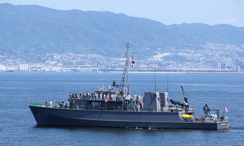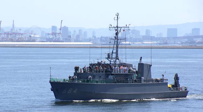 接近する掃海艇「なおしま」