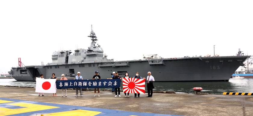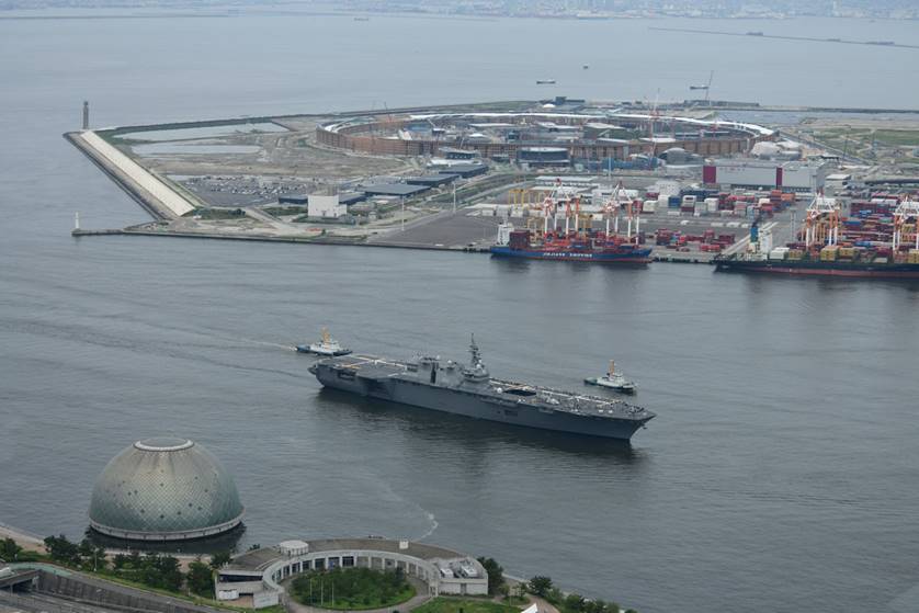 7月14日朝、大阪港天保山に入港してきた護衛艦「いずも」を歓迎する海励会
