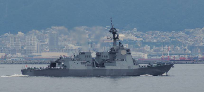 「いずも」飛行甲板から見る、イージス護衛艦「まや」の雄姿!